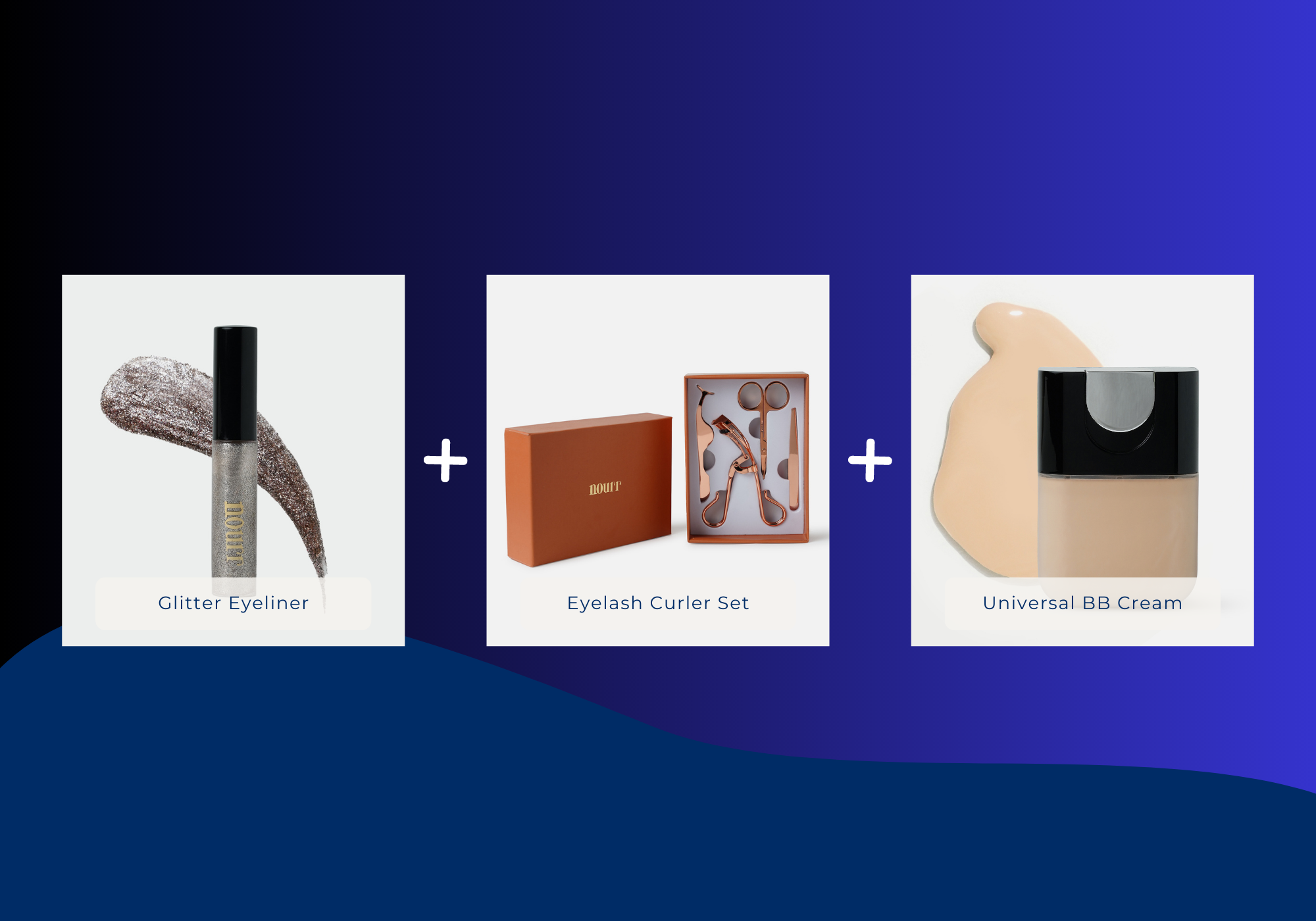 Nourr's Glitter Eyeliner, Eyelash Curler Set and BB Cream Bundle